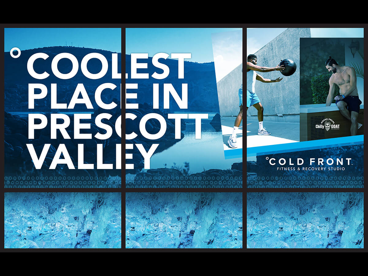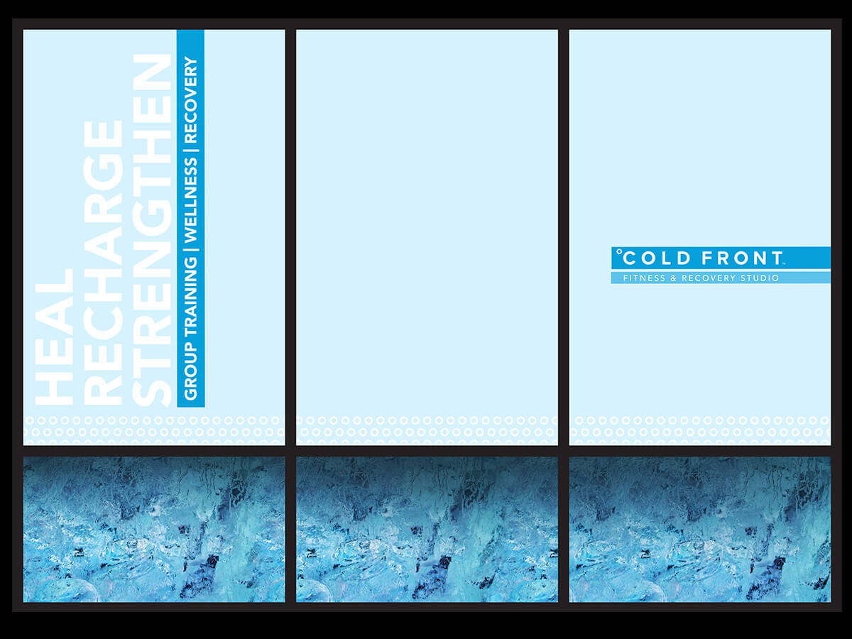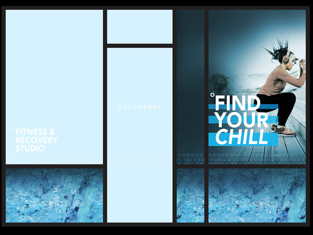 With our expertise in design and branding, we crafted a window display that not only captures attention but also sparks curiosity about the transformative potential of Cold Front°. From dynamic graphics to evocative imagery, every element was carefully curated to communicate the fusion of intensity and revitalization that defines Cold Front°’s approach to fitness. At Seven3Creative, we believe in the power of design to inspire and motivate, and our collaboration with Cold Front° on this project exemplifies that belief.
