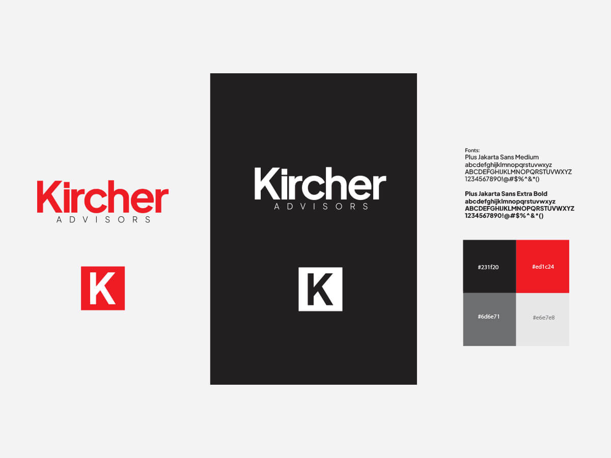 For the logotype, we meticulously crafted a symbol that encapsulates Kircher Advisors’ ethos of expertise and innovation. Each line and curve was purposefully chosen to evoke professionalism and trustworthiness, reflecting the caliber of their services.