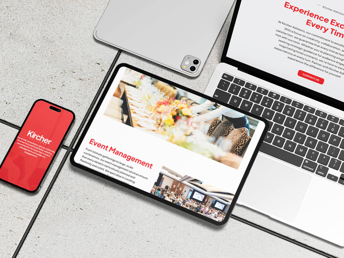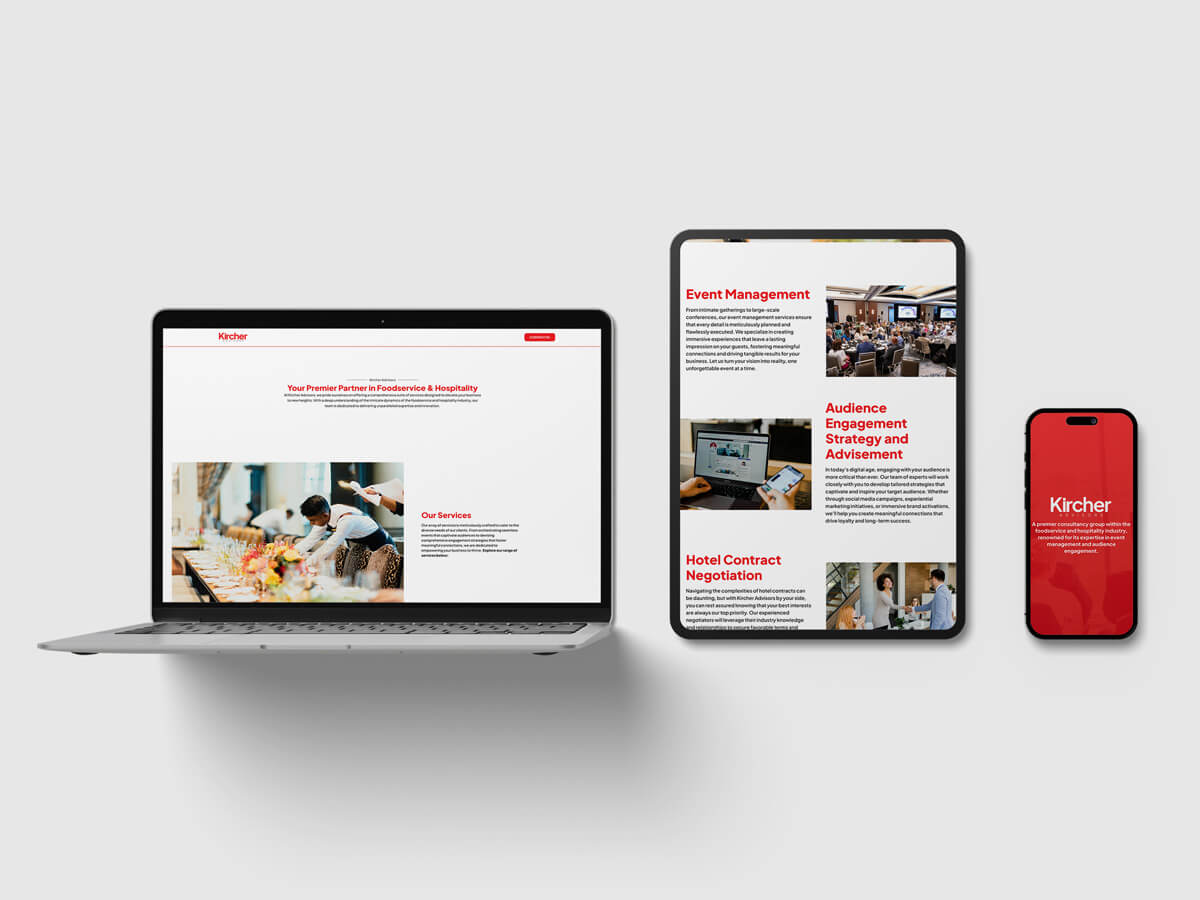 Complementing the logotype, our website design seamlessly integrates form and function. Through intuitive navigation and captivating visuals, we’ve created a digital space that not only showcases Kircher Advisors’ capabilities but also engages visitors, driving them to explore further.
