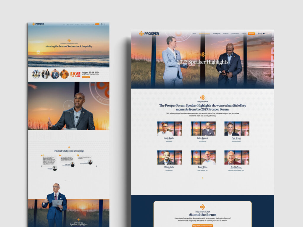 Introducing the new Prosper Forum website, meticulously designed and developed by Seven3Creative. This dynamic platform celebrates the Prosper Accelerators and everyone involved in the forum, while driving traffic and excitement for the upcoming August event. With intuitive navigation and captivating design, our website is the ultimate destination for all things Prosper Forum. Experience excellence in web design with Seven3Creative.
